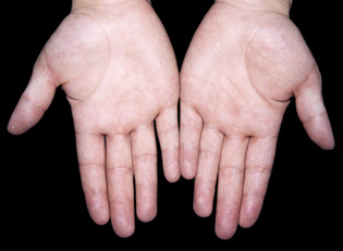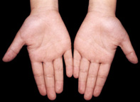 二十岁的人,身体内脏的发育基本成熟了,这时手掌上的1、2、3线随着身体的发育变得深而且长,手掌色泽红白匀称。十指圆润有力,拇指根部的摺纹深长。由于性腺的成熟,体内出现性激素的正常分泌,所以大鱼际和小鱼际都相对比其它部位隆起,而且这两个鱼际的高度遥遥相对,八卦的各部位也开始丰满起来了。骨肉相裹而均匀。手掌上没有青筋显露的现象。这些表示是健康的年轻人。