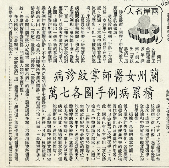 · 1994年2月25日《消费报》刊登“掌纹神医义务就诊”