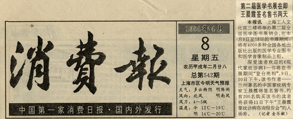 · 1994年3月6日《消费报》刊登“掌上乾坤悬壶济世”
