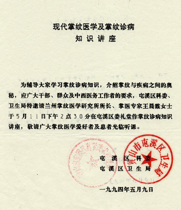 1994年12月8日——12月13日,全国首届“掌纹诊病培训班”在武汉开班。