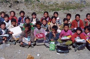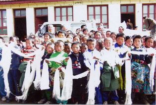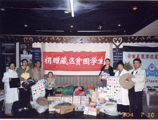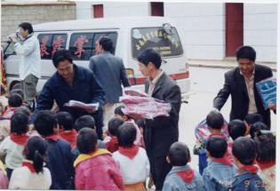 2004年7月10日,云南晨霞掌纹医学研究所捐赠四川甘孜州藏区贫困小学物资。