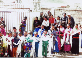 学生及家长们向研究所工作人员献哈达 |